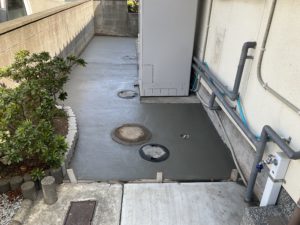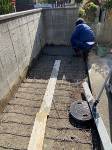 コンクリート打設工事 2025年3月26日 最終更新日時 : 2025年3月26日 JTS 今回の作業は、こちらお人工芝を敷いているスペースをコンクリート敷きに変更する工事です。 地面をすき取り、メッシュを敷いていきます。 コンクリ―を打設して仕上げていきます。